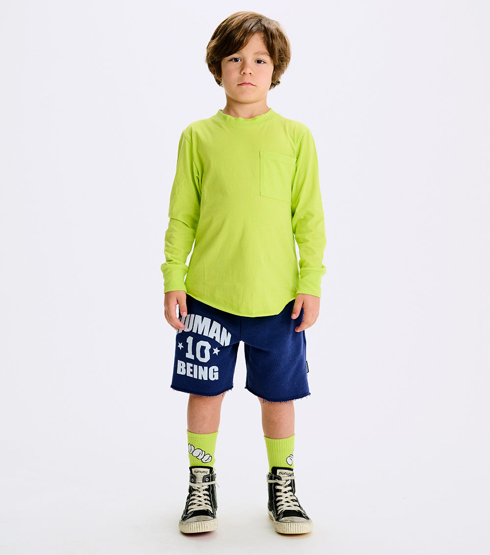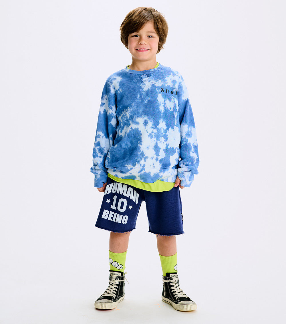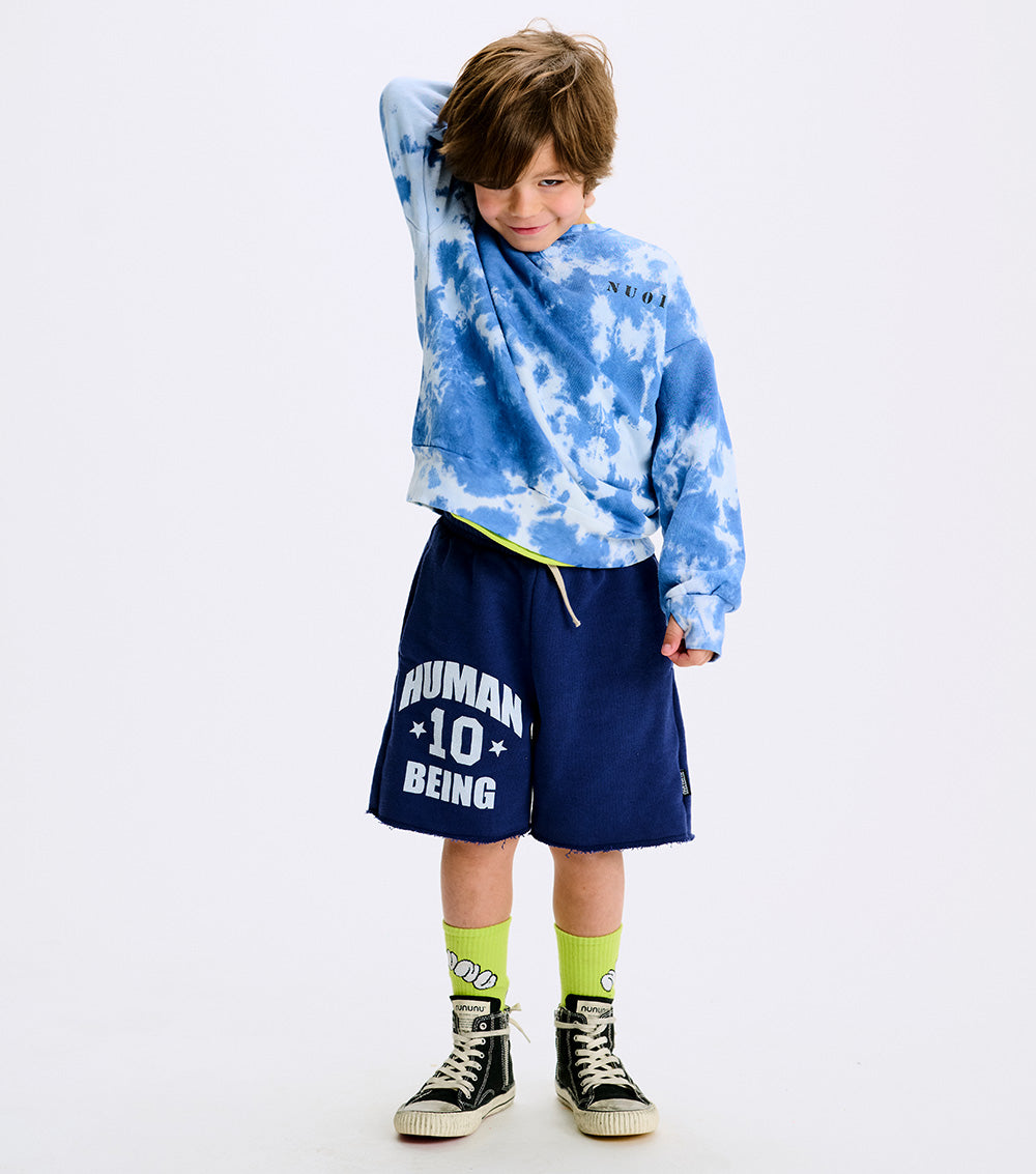 as mvp of team nununu, your kid should only have the best. that’s why these gender neutral sweatshorts are made of seriously soft indigo french terry. they’ve got human being printed loud & proud on the leg because that’s our mascot. no need to be anything other than you right? and because your little winner is our star player, we’ve got the number 10 printed there too, surrounded by a star on each side. sleek side pockets ensure they have the perfect place to stash their game plan & a cinched waistband makes sure they’re always ready to score the next point. oh yeah, and the bottom hem was left totally raw like the legs were cut right off. because we know your kid needs freedom to move & play.