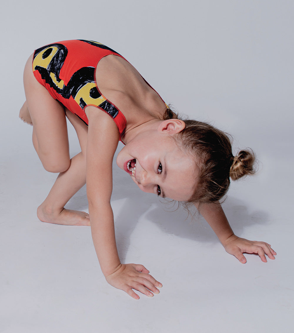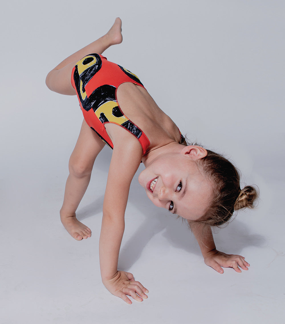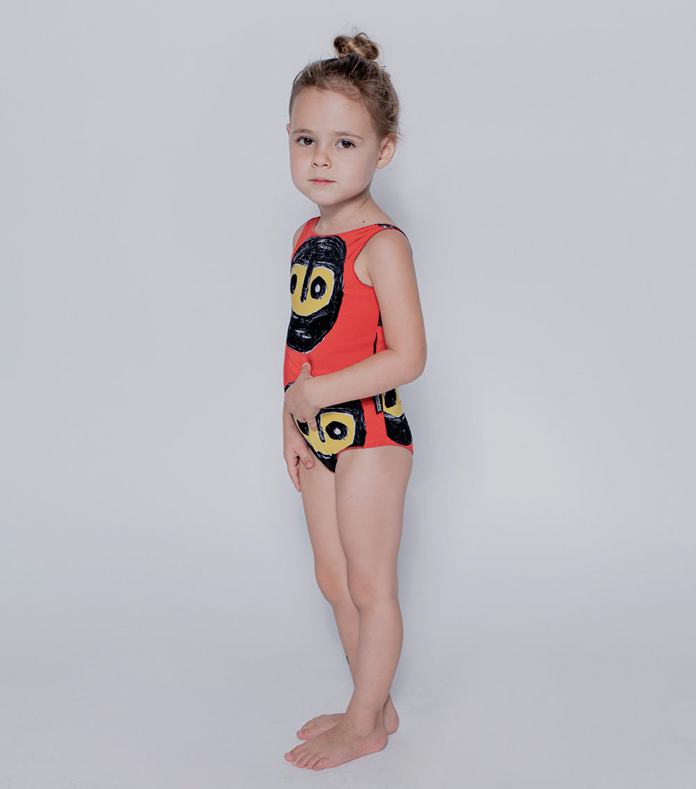 enter: the warrior. this very nununu design is a fun take on the global culture of face-covering that defines our times. he comes scribbled all over this statement-making red one-piece swimsuit for girls. high cut at the neck, it’s a classic tank suit that brings summer 2021 the energy we need.