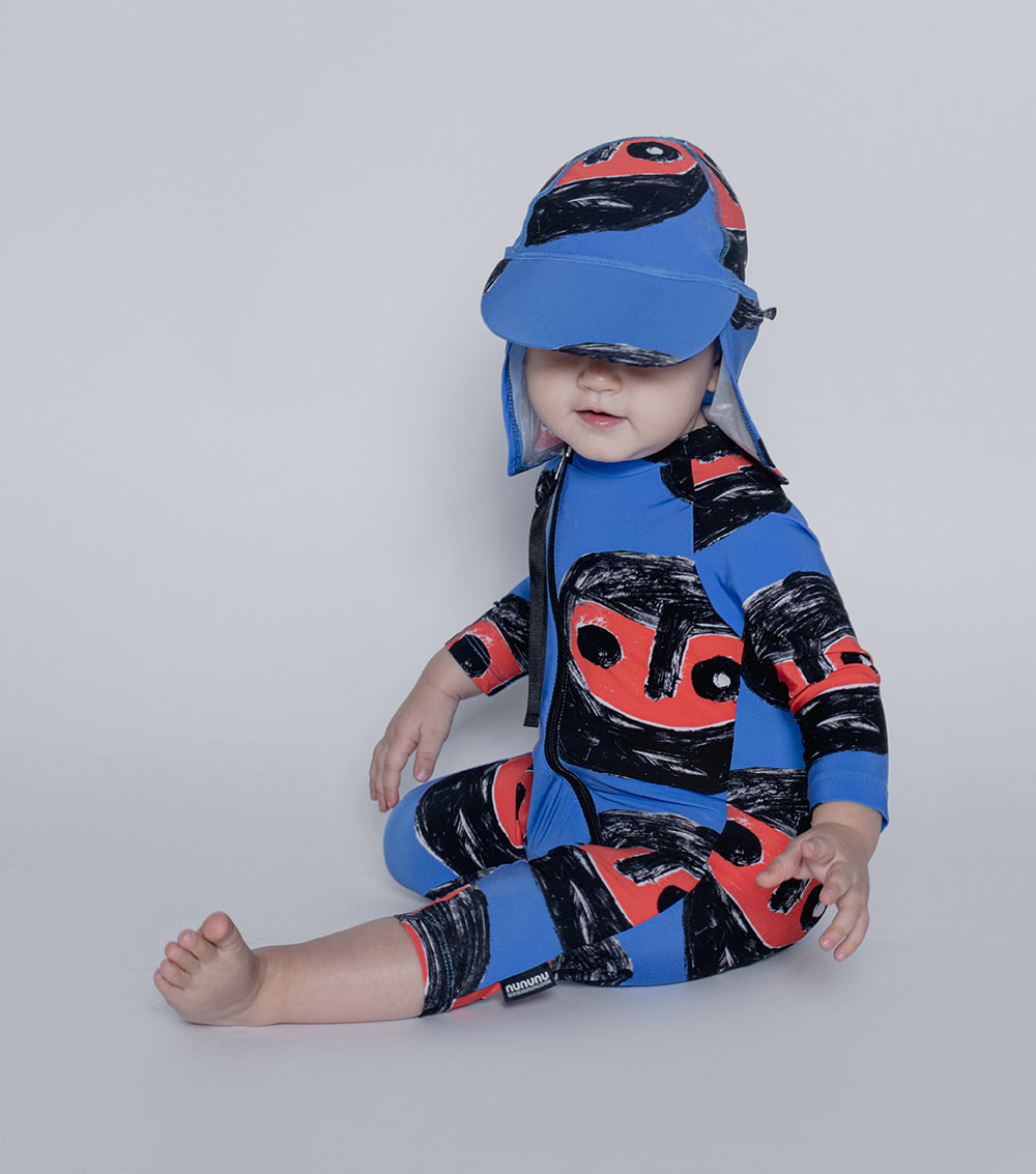 let’s protect the great minds of the future in style, shall we? this blue flap hat for babies & kids up to 5 adds swag & sun protection for boys & girls all around, and it ties under the chin so it won’t blow away in the seaside breeze. its sizable bill & back flap keep the kid covered for outdoor playtime. it’s got our red & black warrior print, a fun take on the global culture of face-covering that defines our times.