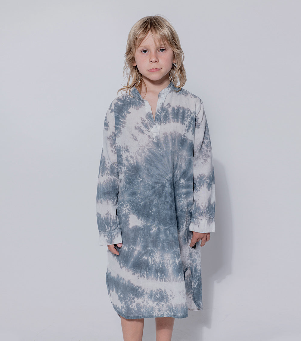 have you heard? tie dye is all the rage. we took this hippie look & reimagined it in muted neutrals on our kaftan in super light summery voile. insanely cool, this globalist piece for boys & girls can be worn alone for lounging/sleeping, or over a suit at the beach.