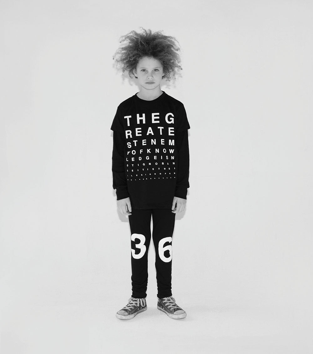 clearly the coolest t-shirt of the season. a conceptual piece encoded with philosophical fun, the black vision test tee comes spangled with the graduated lettering of an iconic optometrist’s tool. the letters reveal a famous saying about “the greatest enemy of knowledge.” take the test to find out what it is.