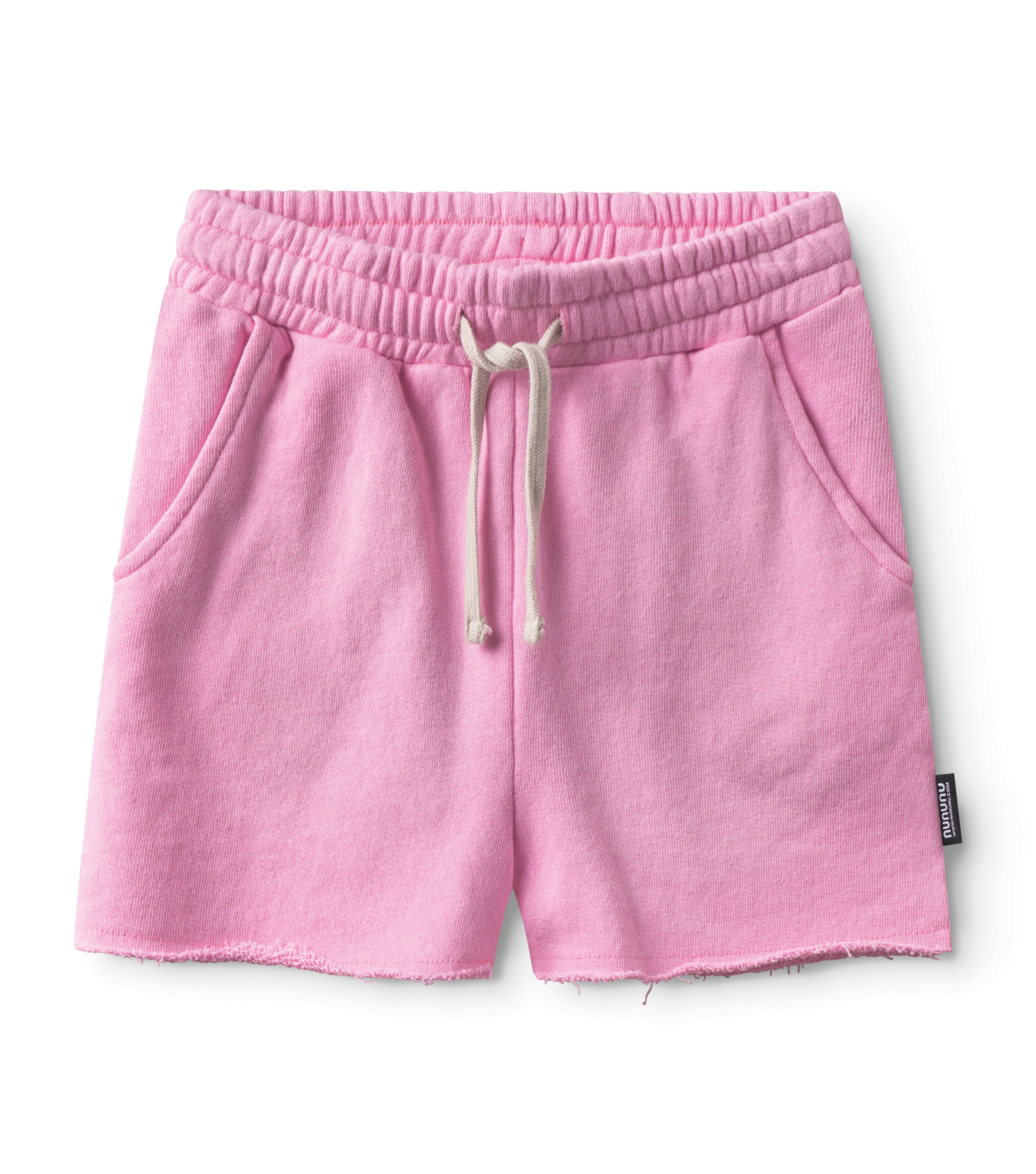 want a look that says day-at-the-beach and wearing them feels like one too? introducing these totally laid back sweatshorts. they’re a gender neutral cut made of seriously soft hot pink french terry with raw hems like your fave pair of cuttoffs. plus, they’ve got a wash to the color that makes them look like they’ve been rinsed in the waves and set out to dry in the sun. of course, they’ve got a stretchy waistband that makes them comfy enough for all day wear and rounded side pockets that are perfect for slipping shades into when the sunset hits.