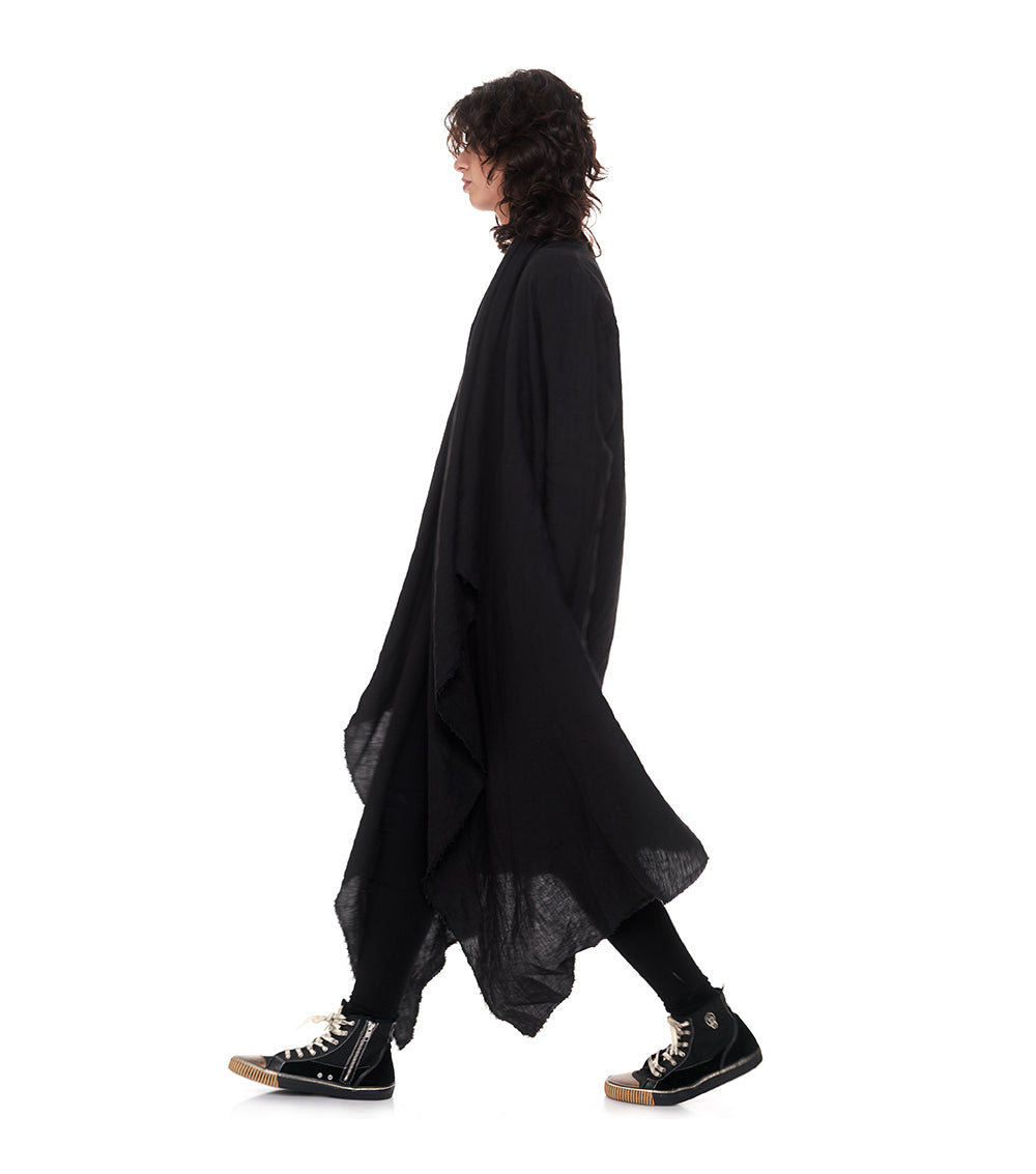 just give in to the ease of the one-piece outfit. you would have to try to not look cool in this black biker-style overall. it’s loose in the crotch and soft all over, with an asymmetrical zipper in front & cozy cuffs at the ankles. on the back, you’ll find our take on the smile face, which is a little more like a “whatever” face, actually. it’s sprayed tagger-style here for when you want to leave without bothering to say goodbye.